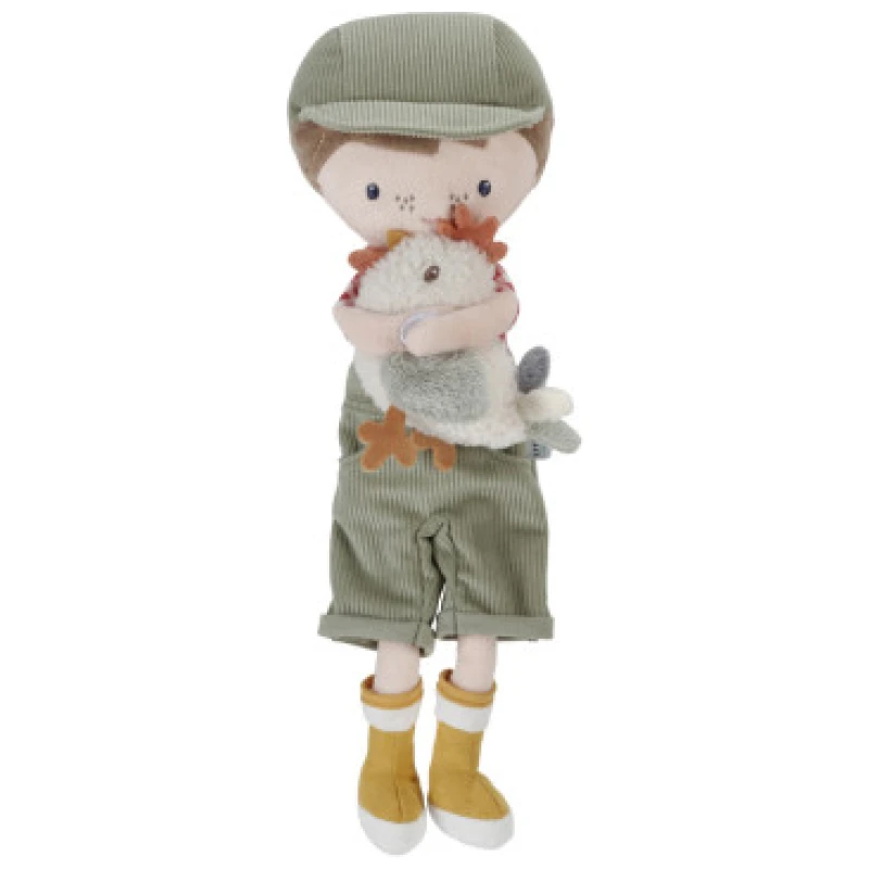 Upoznajte se s farmom uz simpatičnu plišanu lutku Farmera Jim – visine 35 cm. Ova mekana plišana lutka lako će postati najbolji prijatelj tvog djeteta za mazanje. Farmer Jim nosi preslatko vrtno odijelo s lijepom kockastom košuljom i odgovarajućom kapom. A ima i malog životinjskog prijatelja uz sebe! Tvoj mališan će zajedno s Jimom i simpatičnim pilićem doživljavati najčarobnije avanture. Lutka Jim može sjediti uspravno, ali također voli odmoriti se na krevetu s tobom.