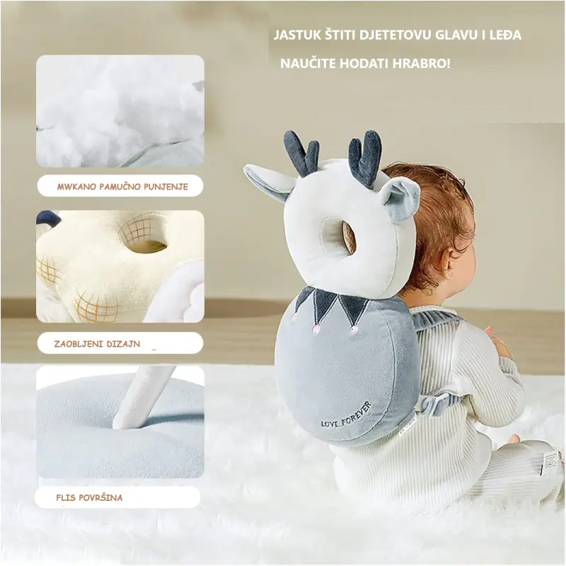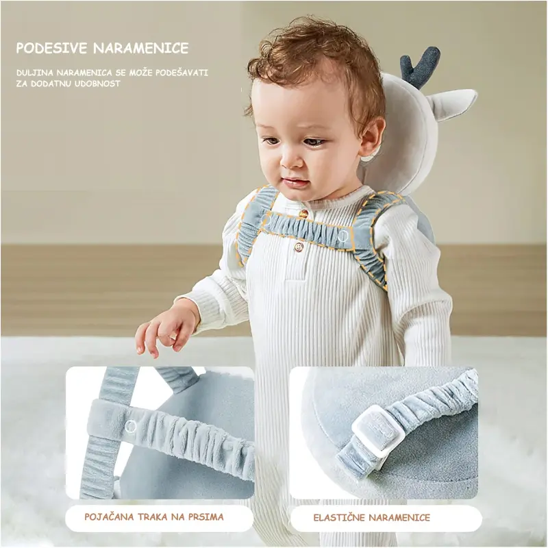 Potpuna zaštita: Plišani jastuk za hodanje 272203 dizajniran je kako bi pružio maksimalnu zaštitu za glavu vašeg mališana, ne ugrožavajući stil ili udobnost. Sa podesivim elastičnim remenima, osigurava sigurno prianjanje i sprečava padanje bebe.