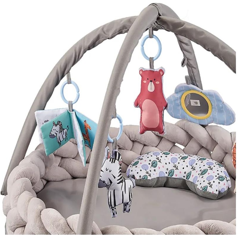 Podloga za aktivnosti za bebe sa 6 odvojivih igračaka dizajnirana je da zadovolji bebine rastuće potrebe za vizualnom, slušnom i taktilnom, kognitivnom i fizičkom koordinacijom. Uključuje sigurna ogledala za samootkrivanje, igračku za zube bez BPA, mekane igračke koje beba može dodirivati i slušati te platnenu knjigu za učenje i istraživanje.