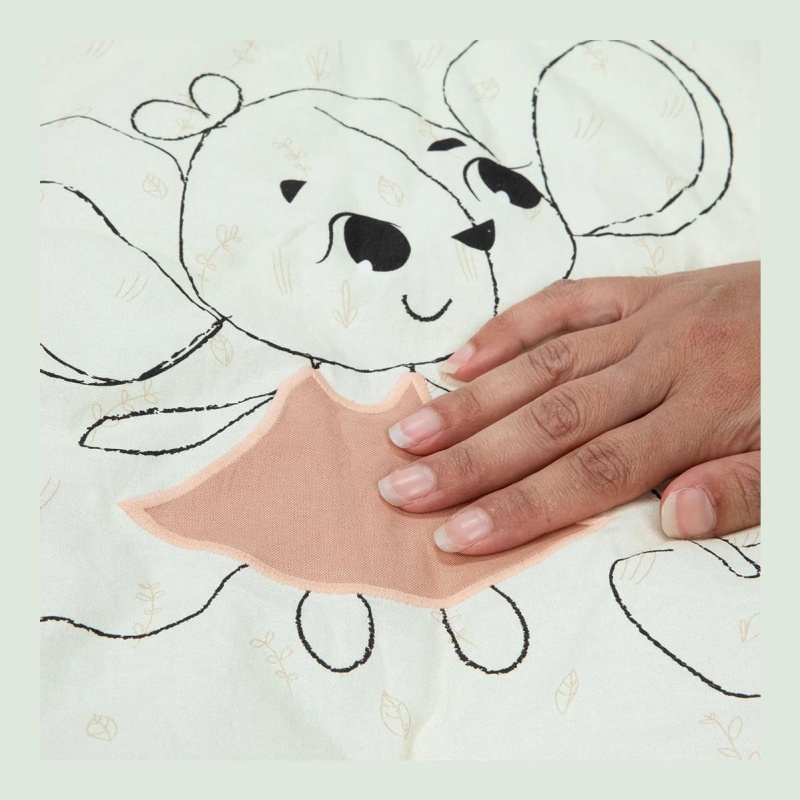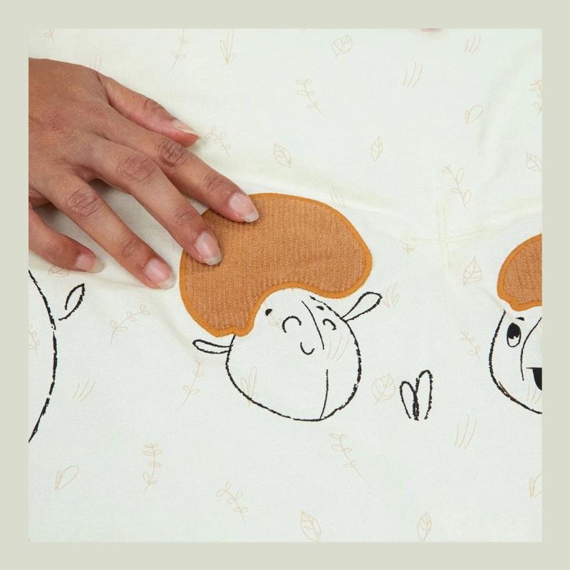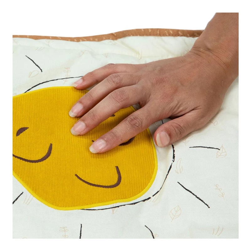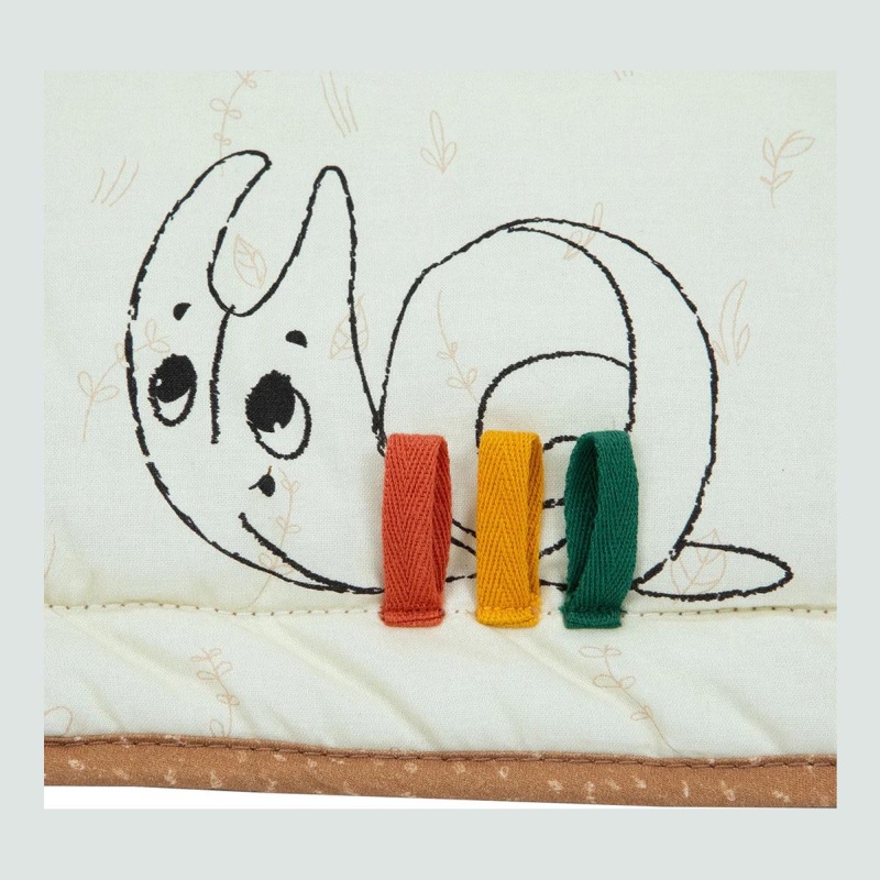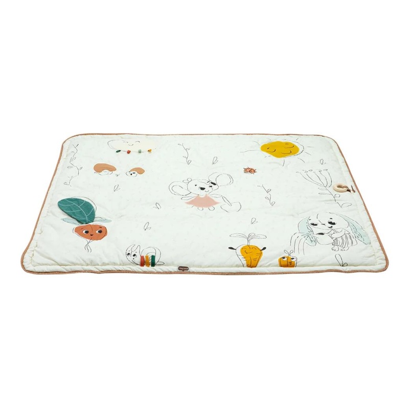 Izrađena od prirodnog pamuka i punjena recikliranim poliesterom, ova podloga nije samo meka i udobna, već i prijateljska prema našem planetu. Svaki detalj ove podloge pažljivo je osmišljen kako bi pružio bebi najbolju stimulaciju za igru. Raspolaže raznovrsnim teksturama, jasnim i šarmantnim ilustracijama slatkih likova, igrama “skrivalice” i šarenim trakama koje će oduševiti vašu bebu.