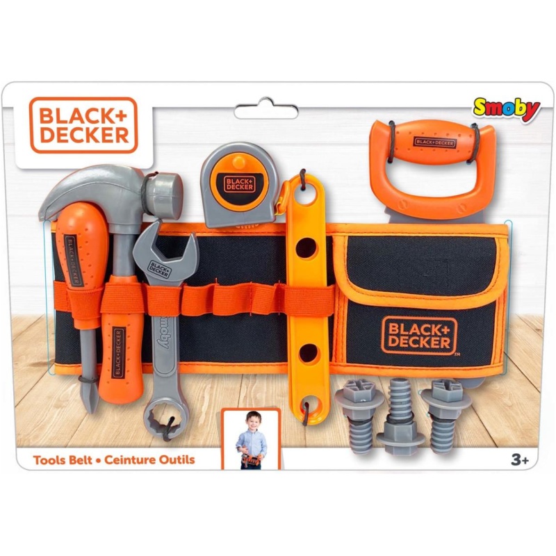 Uz Smoby Black+Decker Pojas i Alat, dobit ćeš širok raspon alata potrebnih za bilo koji kućni projekt. S ovim setom alata imat ćeš sve što ti treba za DIY projekte: pilu, odvijač, čekić, kombinirani ključ, mjernu traku, 3 vijka, 3 konstrukcijske pravokutnike i 3 matice.