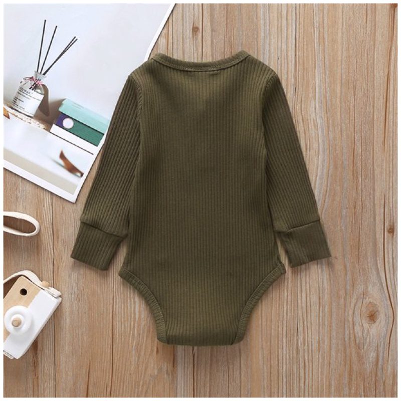 BODI: Dječji bodi dugih rukava s prednjim kopčanjem na dugmad. Bodi je izrađen od mekog i prozračnog pamuka, tkanine pogodne za kožu beba.