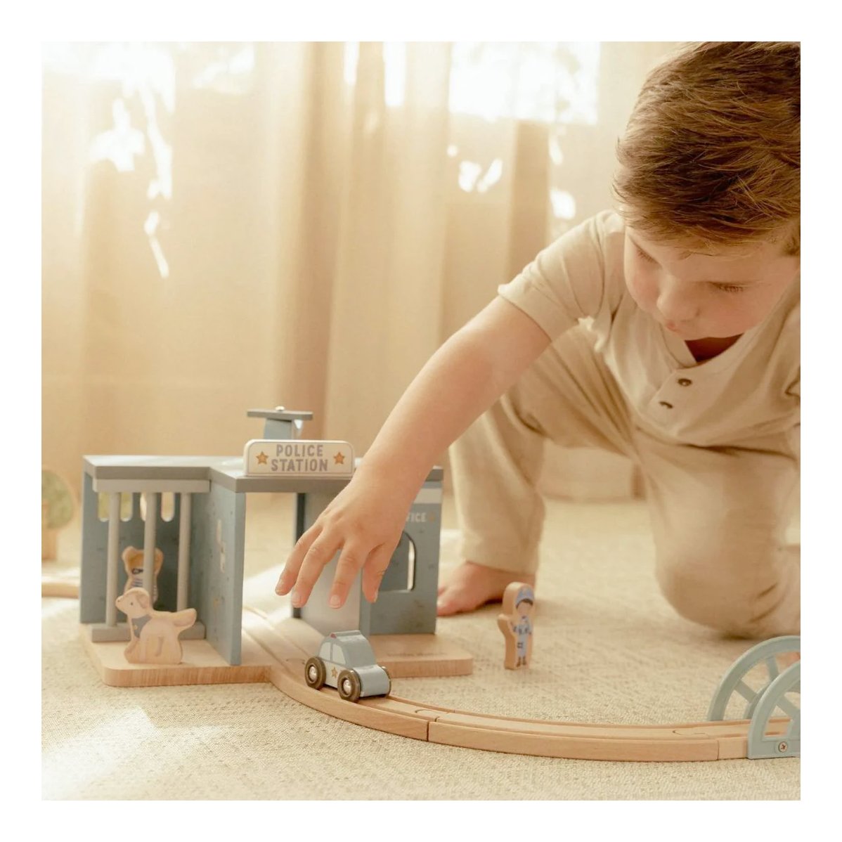Otkrijte svijet maštovite igre i dječje radosti s Little Dutch Policijskom Postajom Ld2539! Ova očaravajuća drvena postaja nije samo igračka, već vrata u svijet pustolovina i učenja. Sa svojim policijskim automobilom, helikopterom, odvažnim policajcem, lopovom i vjernim policijskim psom, vaši mali junaci mogu iznova stvarati uzbudljive priče, potičući njihovu kreativnost i razvoj motoričkih vještina.