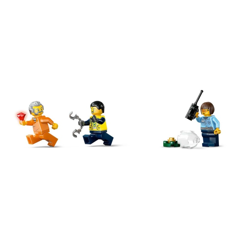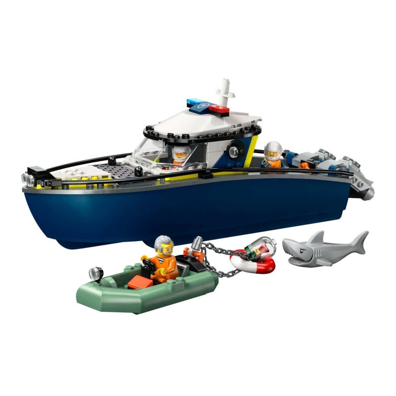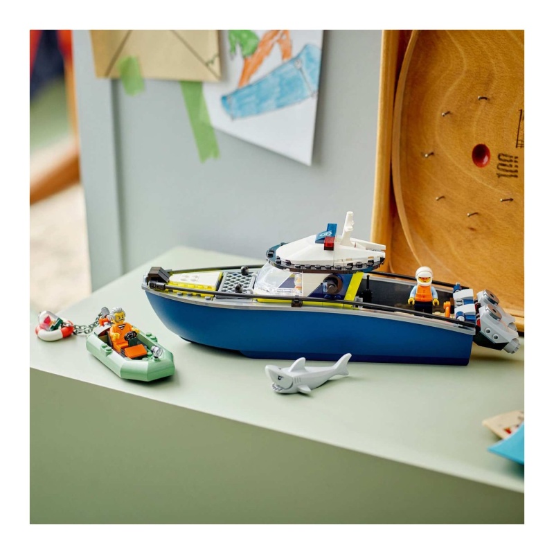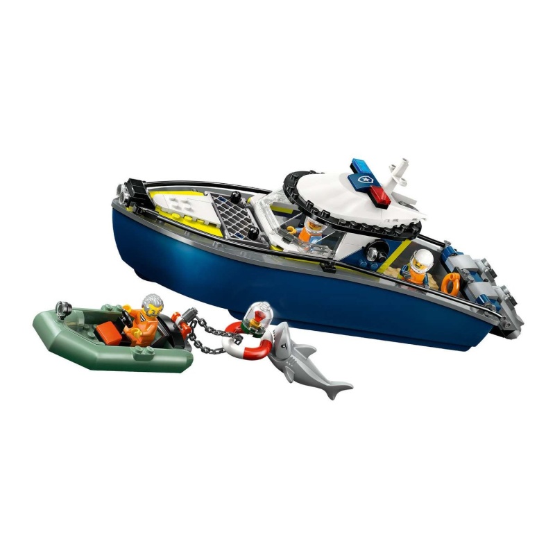 U LEGO® Cityju, lopov bježi s dragocjenim rubinom, a vi ste jedini koji ga može zaustaviti. Kako? S našim Policijskim Potjerom Brodom 60456, opremljenim najnovijom tehnologijom i snažnim dizajnom. Ovaj set nije samo igračka; to je putovanje u svijet neograničene maštovitosti i uzbuđenja. Dva snažna izvanbrodska motora omogućavaju nevjerojatnu brzinu i agilnost, dok sigurnosna ćelija osigurava da nema bježanja kad zlikovac konačno bude uhvaćen. Ne zaboravimo i na gladnu ajkulu koja dodaje dodatni sloj napetosti tijekom potjere!