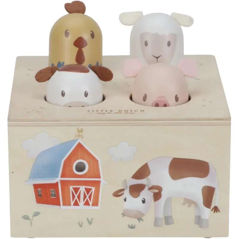 Ova predivna interaktivna igračka Little Dutch Pop Up Igračka Little Farm će oduševiti tvoje dijete i pružiti mu nevjerojatno iskustvo igre. Izrađena je od čvrstog drva i obojena “child-friendly” bojama na bazi vode, što znači da je sigurna i kvalitetna.