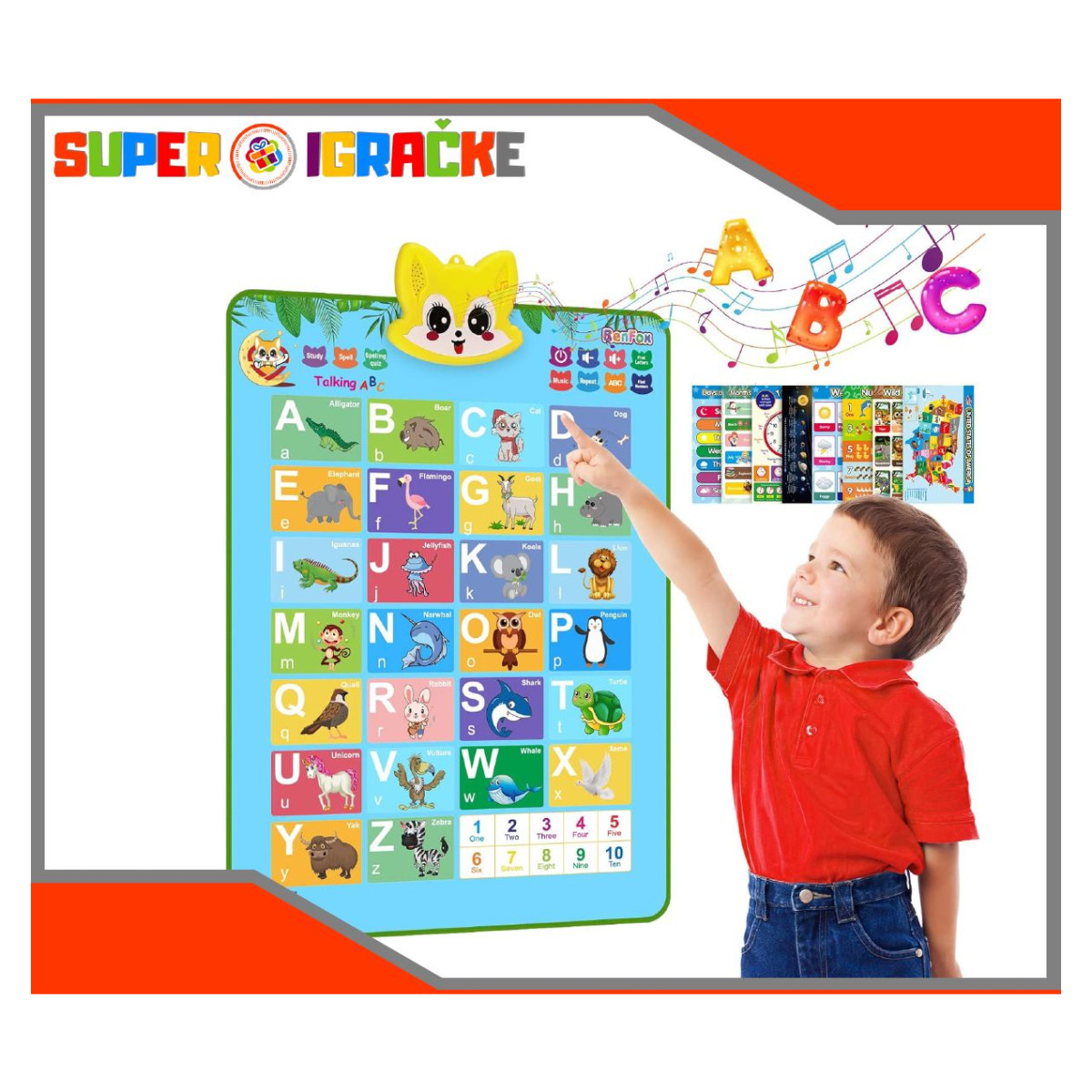 Otkrijte svijet engleskog jezika na način koji djeci budi radoznalost i osmijeh! Ova interaktivna igračka nije samo zidni poster – to je prava mala avantura kroz slova, brojeve i šareni svijet životinja. Jednostavno objesite poster na zid i gledajte kako vaše dijete s lakoćom usvaja nova znanja kroz igru i zabavu.