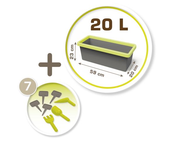 Smoby Eden posuda za sadnju namijenjena je djeci i odraslima koji žele jednostavno započeti s uzgojem cvijeća, začinskog bilja ili manjih biljaka. Kompaktan format čini je praktičnom za balkon, terasu, dvorište ili manji vrtni kutak.