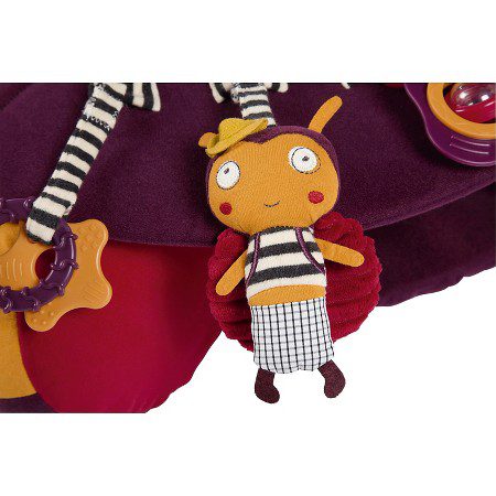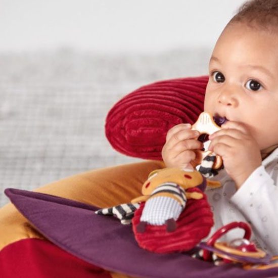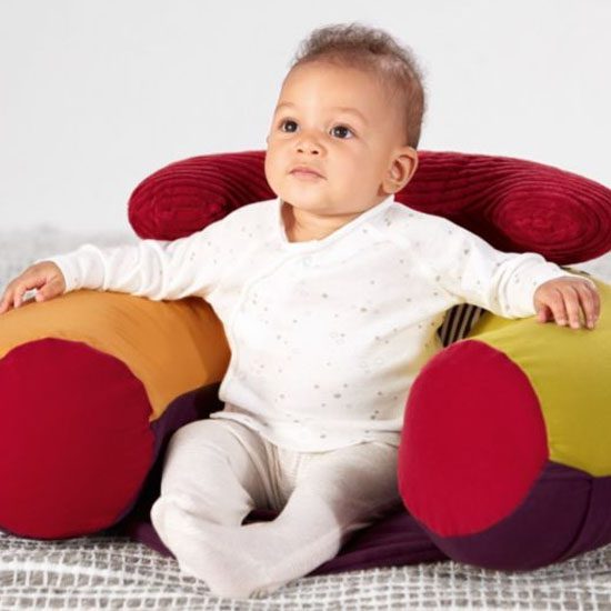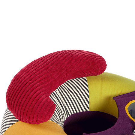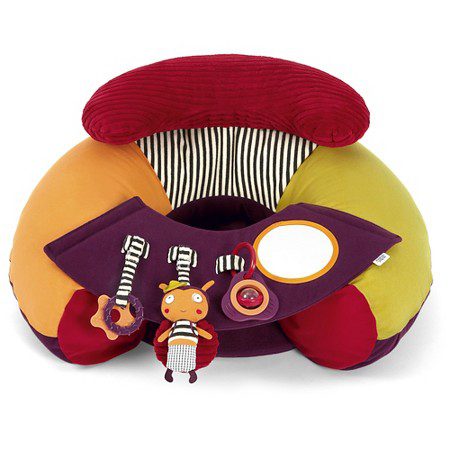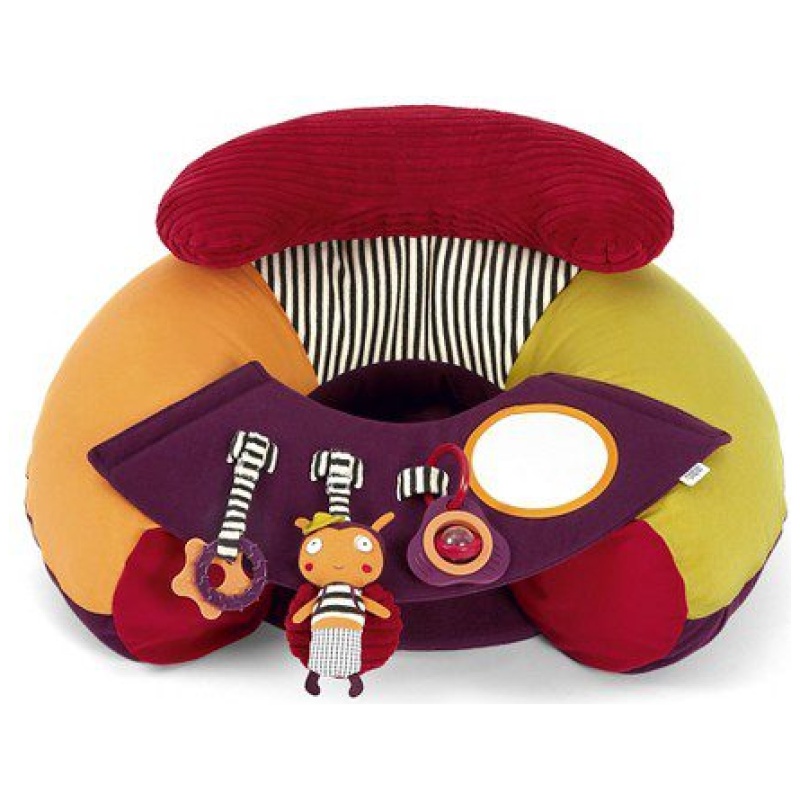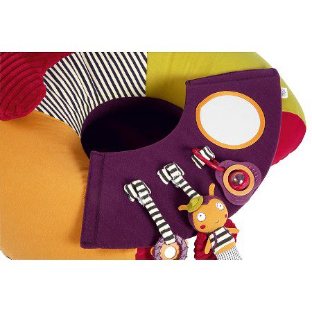 Nova inovativna igračka od proizvođača Mamas&Papas namjenjena je za bebe od 6 mjeseci. U obliku je koluta koji liči na fotelju. Lijepih je i veselih boja s integriranim igračkama, glodalicama, zvečkama i dr. Namjenjena je isključivo za igranje bebe na podu, te se ne smije stavljati na uzvišene površine kako beba ne bi pala i ozlijedila se. Igračka se jednostavno napuše te je prikladna i za nositi na druga mjesta. Ispuhana zauzima malo prostora. Vesela je i inovativna igračka koja potpomaže bebi da pravilno sjedi, a pri tome potiče razvoj bebine motorike, zainteresiranosti, osluškivanja i interes za igrom. Igračke se mogu skidati i mjenjati. Također ima uklonjivi platneni pladanj na kojem su pričvršćene igračkice koji se lako skida i postavlja. Pokrov se skida i periv je u perilici na 40`. Dimenzije: 31x72x16 cm. Prikladan je i lijep poklon za svaku bebu.