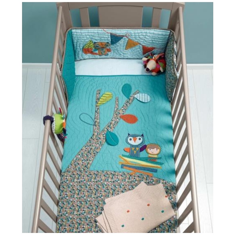 Kvalitetni veseli prekrivač od Mamas&Papas. Tople plave boje s uzorkom. Lijepog i jednostavnog dizajna. Periv u perilici na 40`. Sastav: 100% pamuk.