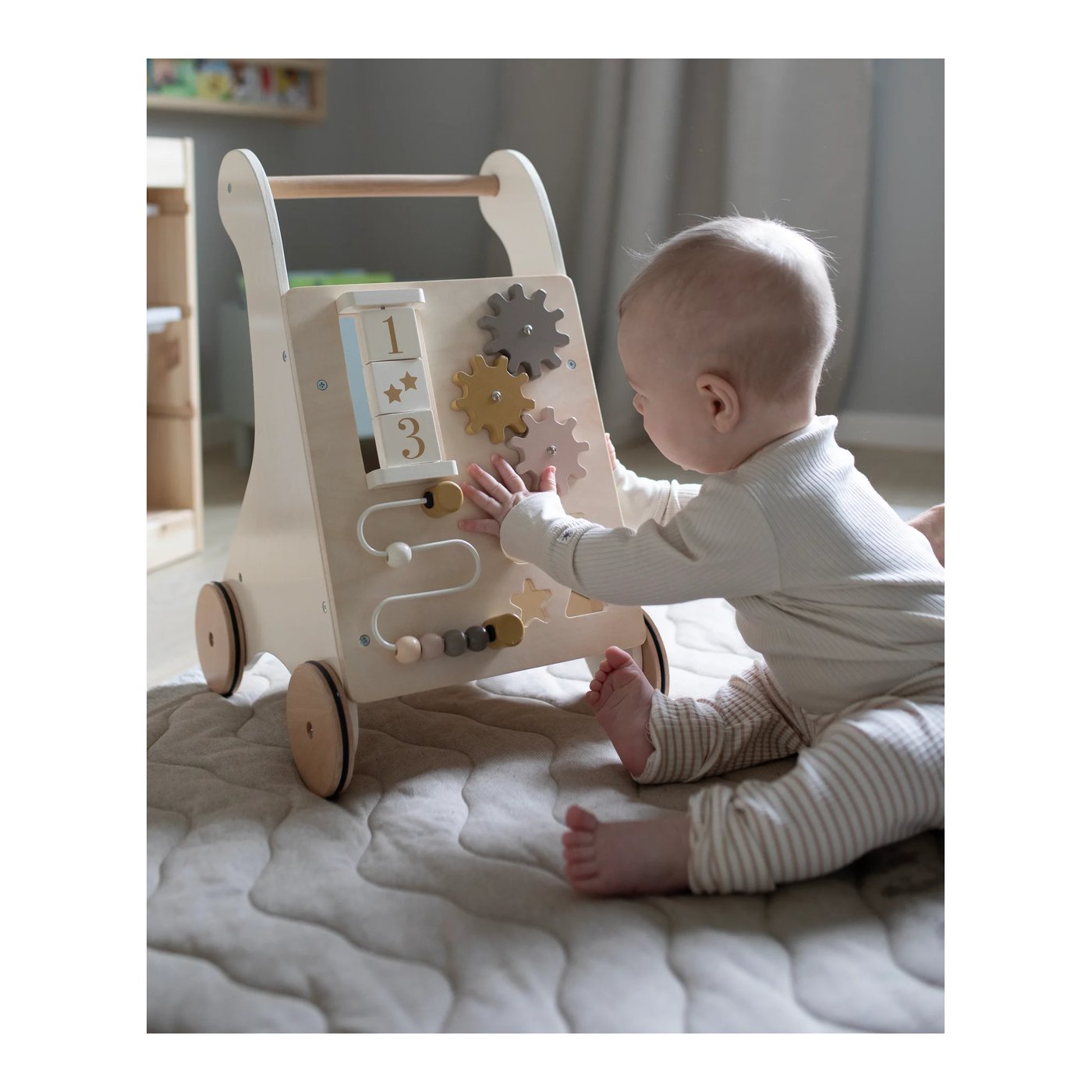 Jabadabado Prohodalica Nature C2559 dolazi u privlačnoj zemljanoj boji koja unosi dašak prirode u svaki trenutak igre. Izrađena je od FSC™ certificiranog drva, čime osigurava trajnost i sigurnost, a istodobno promovira održivost. Naša prohodalica nije samo alat za hodanje, već i igračka puna aktivnosti koje potiču dječju maštu i razvijaju njihove motoričke sposobnosti. S raznim igricama koje stimuliraju malene umove, vaše dijete će se satima zabavljati, dok uči balansirati i kretati se s lakoćom.