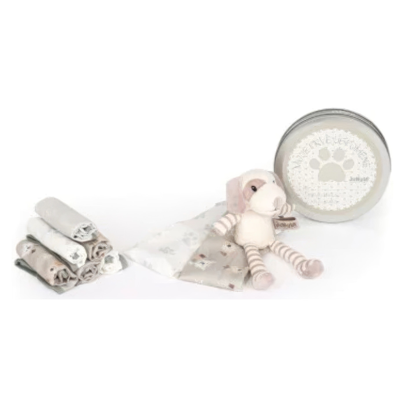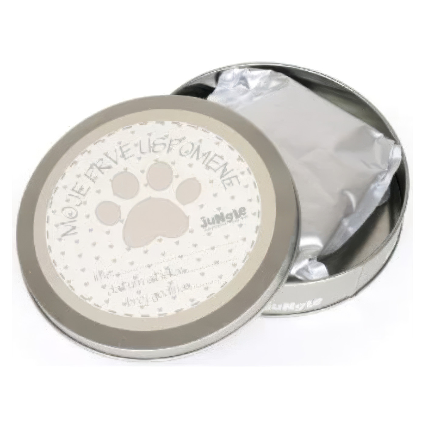 Ovaj set pruža priliku da na jednostavan i siguran način zauvijek sačuvate otisak ručice ili stopala svoje bebe, pretvarajući dragocjene trenutke iz prvih mjeseci u trajnu uspomenu. Uz elegantan dekorativni okvir s motivom sivog psa, ova uspomena postaje ne samo vrijedna, već i predivan dodatak svakom prostoru.