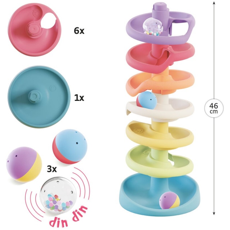 Kuglice se spuštaju niz spiralnu stazu i pružaju nevjerojatnu zabavu za sve mališane. Jedna od kuglica čak proizvodi zvuk dok se kreće.