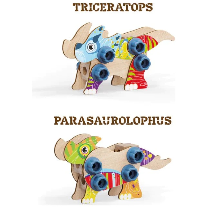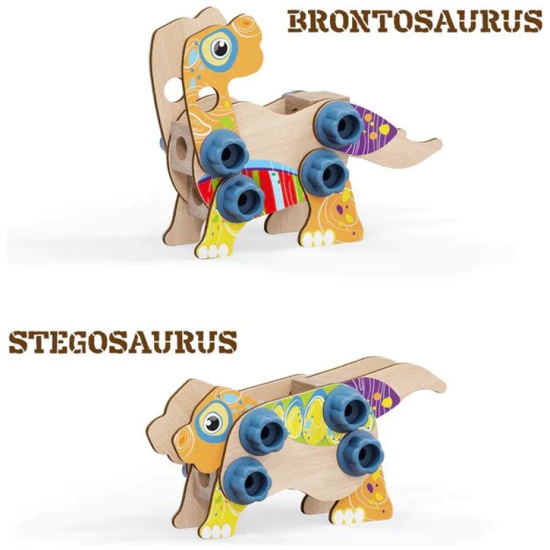 Jednostavno ih složi koristeći drvene šablone i zatim pričvrsti pomoću vijaka. Ovaj inovativni i ekološki prihvatljiv set pružit će tvojoj djeci sate i sate zabave. Svaki put kad sastavljaju i rastavljaju dinosauruse, razvijaju svoje kognitivne sposobnosti i potiču maštu.