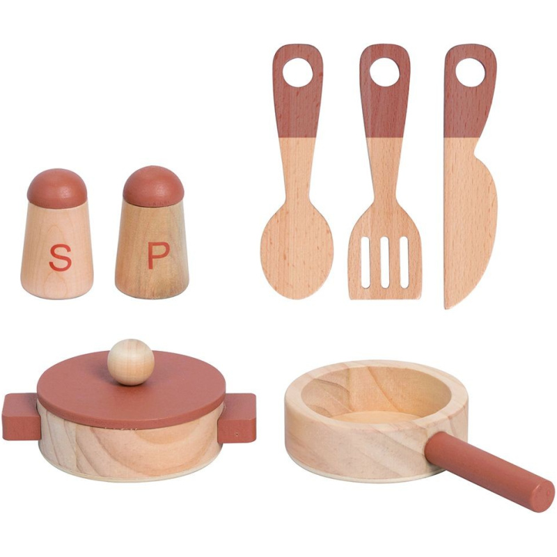 Da, uz kuhinju dolazi 8 dijelova drvenog pribora.