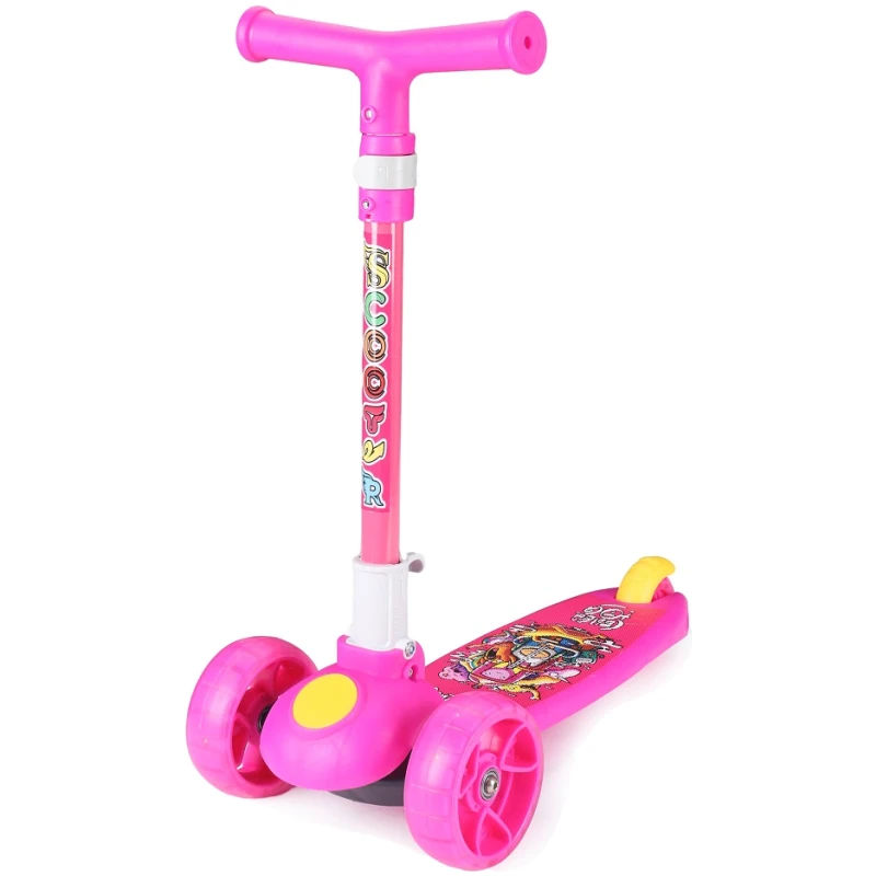 Romobil posjeduje 3 gumena kotača koje svijetle prilikom ubrzanja romobila. Djeca mogu s lakoćom voziti ovaj romobil po lošim cestama, mekanim tepisima, ulaštenim podovima i mokroj travi.