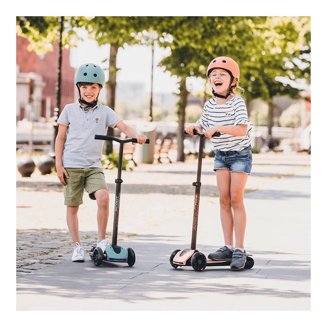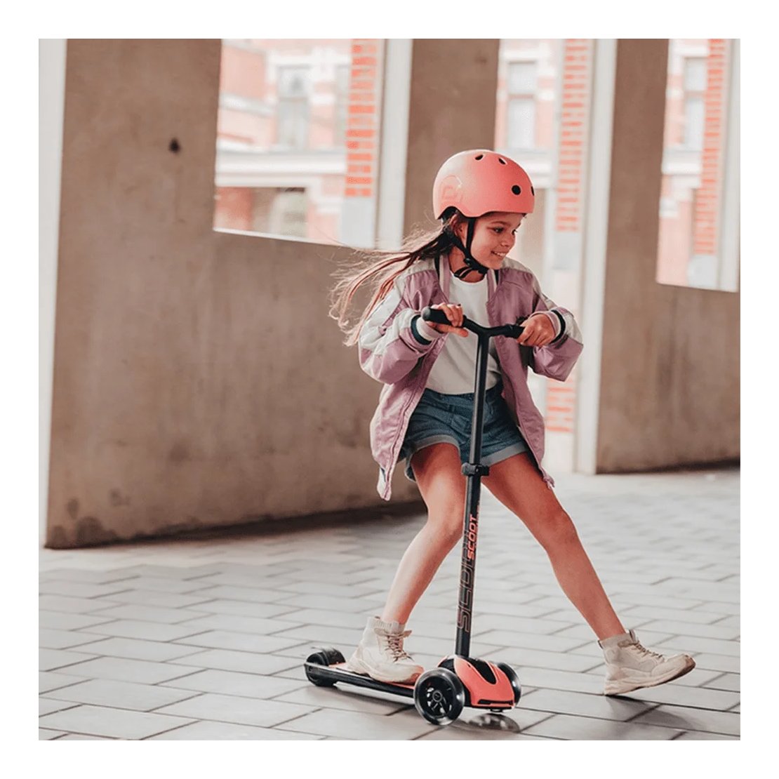 Scoot & Ride Romobil Highwaykick 5 LED Peach nudi sigurnu i zabavnu vožnju za djecu od 5+ godina. Njegov podesivi upravljač omogućuje dugotrajnu uporabu, a čvrsta konstrukcija podržava do 80 kg. Uključuje jednogodišnje jamstvo za dodatnu sigurnost.