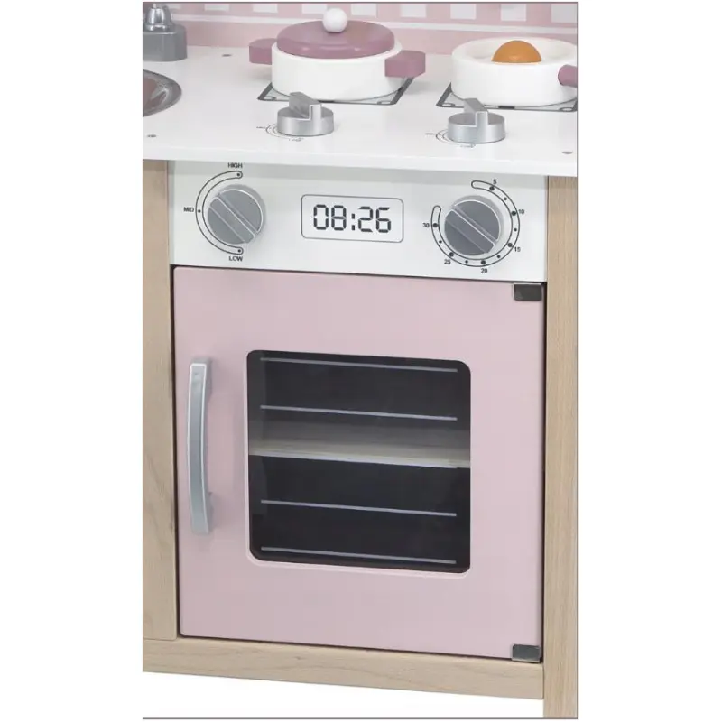 Ovaj fantastičan set za igru u kuhinji omogućuje djeci da kuhaju i pripremaju ukusne obroke za obitelj ili prijatelje. Nauči svoje dijete kako koristiti kuhinjske alate kroz igru, potakni njihovu kreativnost i maštu. Okreni kotač za začinjavanje staklenki sa zvukom “klik”, i osjeti kako to funkcionira. Sat s pokretnim kazaljkama na vrhu seta pruža određenu dozu stvarnosti. Djeca kroz ove satove mogu naučiti kako mjeriti vrijeme. Prostor za skladištenje ispod sudopera je dovoljno velik da djeca mogu pohraniti vlastitu hranu. Ovo je izvrsna prilika da tvoje dijete nauči odgovornost za svoj nered i čišćenje kroz igru.
