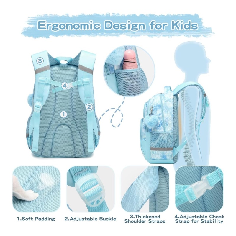 Što čini ovaj ruksak posebnim? Njegova izuzetna prostranost i funkcionalnost. Ruksak nudi višestruke pretince, uključujući dva glavna, dva prednja, te dva bočna džepa za boce s vodom. Ovaj dizajn omogućuje vašoj djeci da organiziraju svoje stvari s lakoćom, čineći svaki dan u školi ili na izletu ugodnijim i efikasnijim.