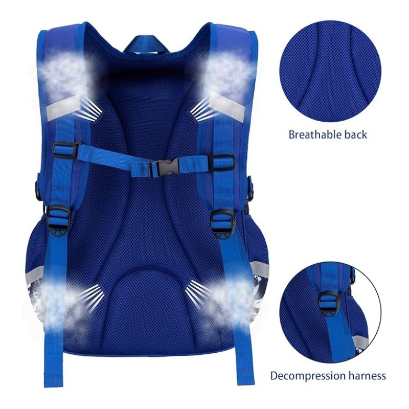 Ruksak napravljen je od visokokvalitetnog najlonskog materijala koji je otporan na ogrebotine i vodu, osiguravajući dugotrajnost i zaštitu u svim vremenskim uvjetima. Njegova jedinstvena prednost leži u inovativnim “S” oblikovanim naramenicama koje su ergonomski dizajnirane kako bi pružile optimalnu potporu i zaštitile kralježnicu vašeg djeteta. Prozračni i jastučićima obloženi leđni dio omogućuje maksimalnu udobnost, čak i tijekom najdužih školskih dana.