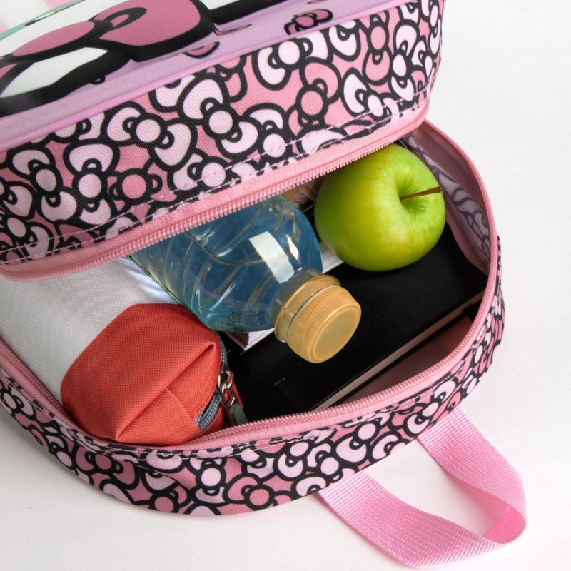 Želja: Njegova prostrana unutrašnjost osigurava dovoljno mjesta za knjige, užinu i sve ono što čini dan vašeg djeteta posebnim. Izrađen od visokokvalitetnih materijala, ovaj ruksak je ne samo moderan, već i iznimno izdržljiv, sposoban pratiti vaše dijete kroz sve izazove. Podesive naramenice omogućuju udobno nošenje, dok reflektirajući elementi osiguravaju dodatnu sigurnost u uvjetima smanjene vidljivosti. No, ono što ovaj ruksak čini doista posebnim jest njegov 3D dizajn koji stvara osjećaj da je Hello Kitty uvijek tu, spremna za nove pustolovine.