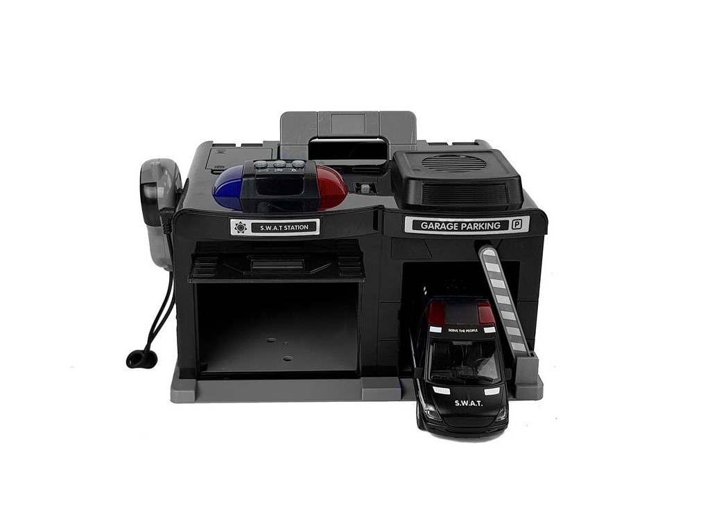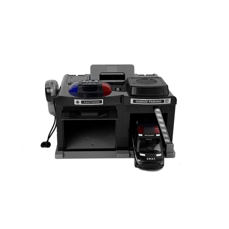 Vaše dijete će moći igrati kao policajac iz specijalne jedinice. Na krovu garaže nalaze se tri tipke sa zvučnim i svjetlosnim signalima. Voki-toki je također pričvršćen na lijevu stranu kuće.