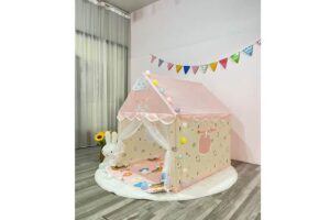Šator 312979 pruža djeci sigurno i maštovito mjesto za igru, izrađen od ekološke poliesterne pamučne tkanine za dugotrajnu upotrebu zahvaljujući otpornom dizajnu.