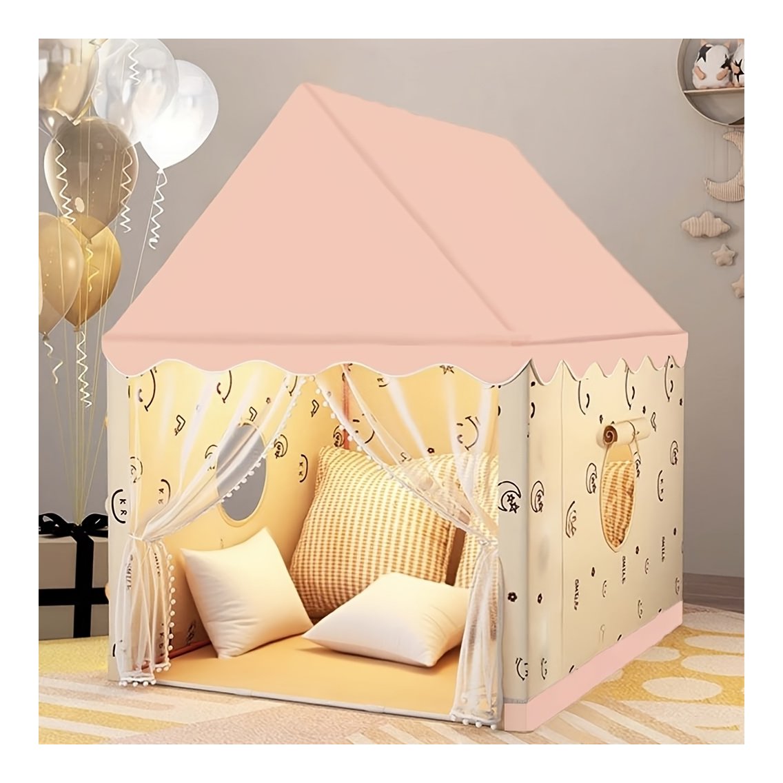 Šator 312979 pruža djeci sigurno i maštovito mjesto za igru, izrađen od ekološke poliesterne pamučne tkanine za dugotrajnu upotrebu zahvaljujući otpornom dizajnu.