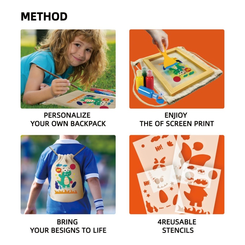 Unutar ovog seta pronaći ćete sve što vam je potrebno za taj kreativni poduhvat. Uključili smo visokokvalitetne boje za tkanine koje će osigurati dugotrajnost i živost vaših dizajna. Također, tu je i široka lepeza poštica koji će vam poslužiti kao inspiracija, kao i razni alati za slikanje kako bi vaša umjetnička vizija zaživjela. Bez obzira na to volite li odvažne uzorke, inspirativne citate ili vlastite ilustracije, Screen Printing Kreativni Set omogućuje vam da svoj stil prenesete na ruksak.