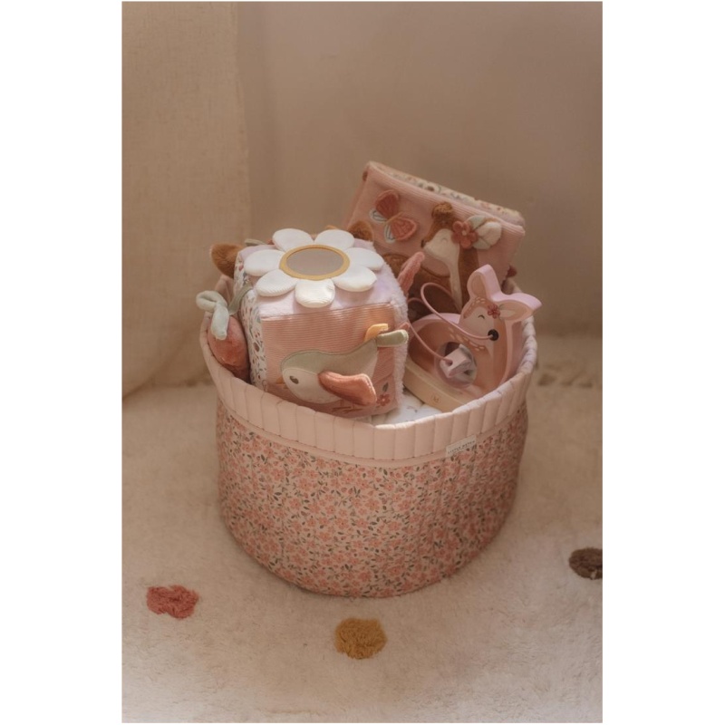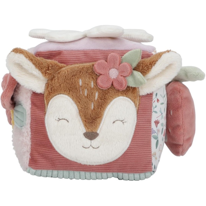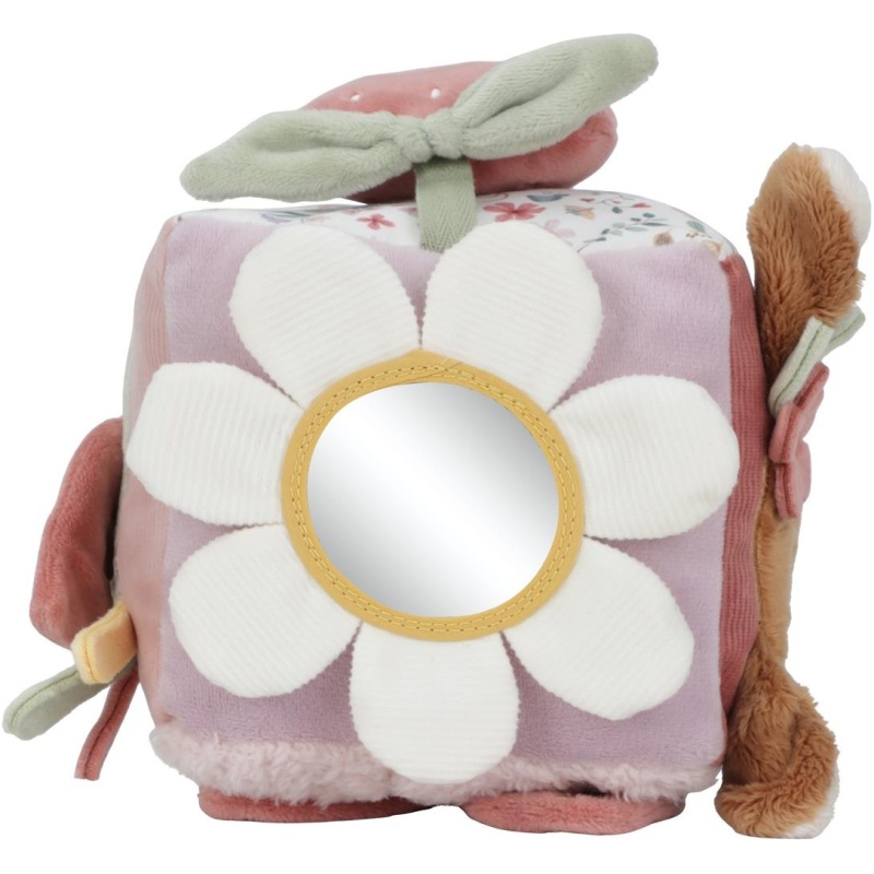 Dođite i istražite Vilenjački vrt u kojem žive i igraju se srna, ptica i leptir. Ova mekana kocka za aktivnosti, napravljena u nizu privlačnih boja, probudit će znatiželju vaše bebe. Svaka strana ima različitu aktivnost i oblikovana je s različitim teksturama, oblicima i stimulirajućim značajkama. Kocku se može uhvatiti i okretati, a dolazi i s ogledalom za otkrivanje sebe. Pruža beskrajnu zabavu dok razvija osjetila vašeg djeteta.