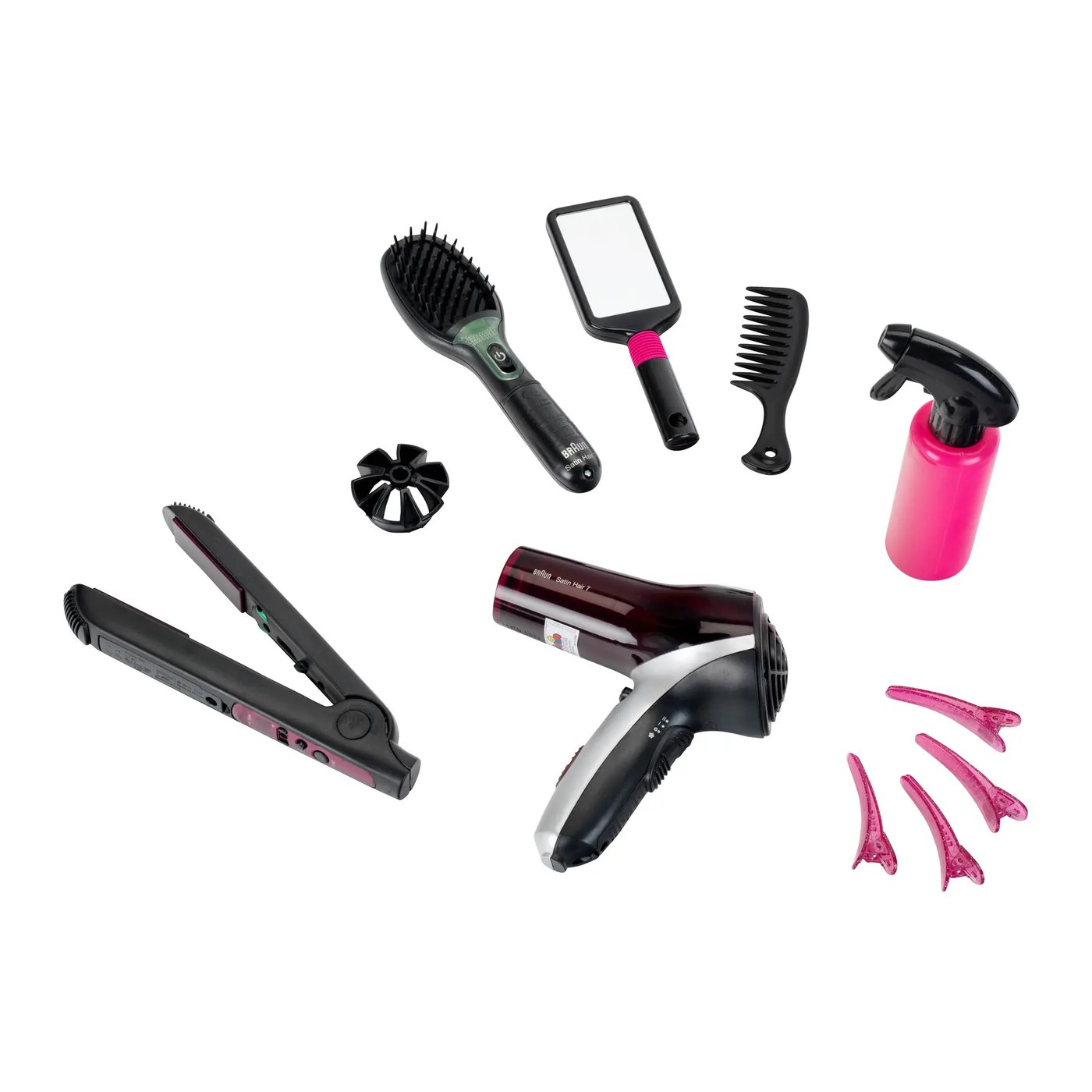 Ono što čini ovaj set posebnim jest inovativna i sigurna funkcionalnost svakog dijela. Posebno dizajnirani sušilo za kosu puše hladan zrak, pružajući autentično iskustvo bez ikakvog rizika. To omogućuje djeci da se u potpunosti prepuste igri, dok vi možete biti mirni znajući da je sigurnost na prvom mjestu. Uz to, set uključuje i jedinstvenu Satin Hair 7 četku, koja im omogućava da nježno raščešljaju kosu, imitirajući stvarni salonski tretman.
