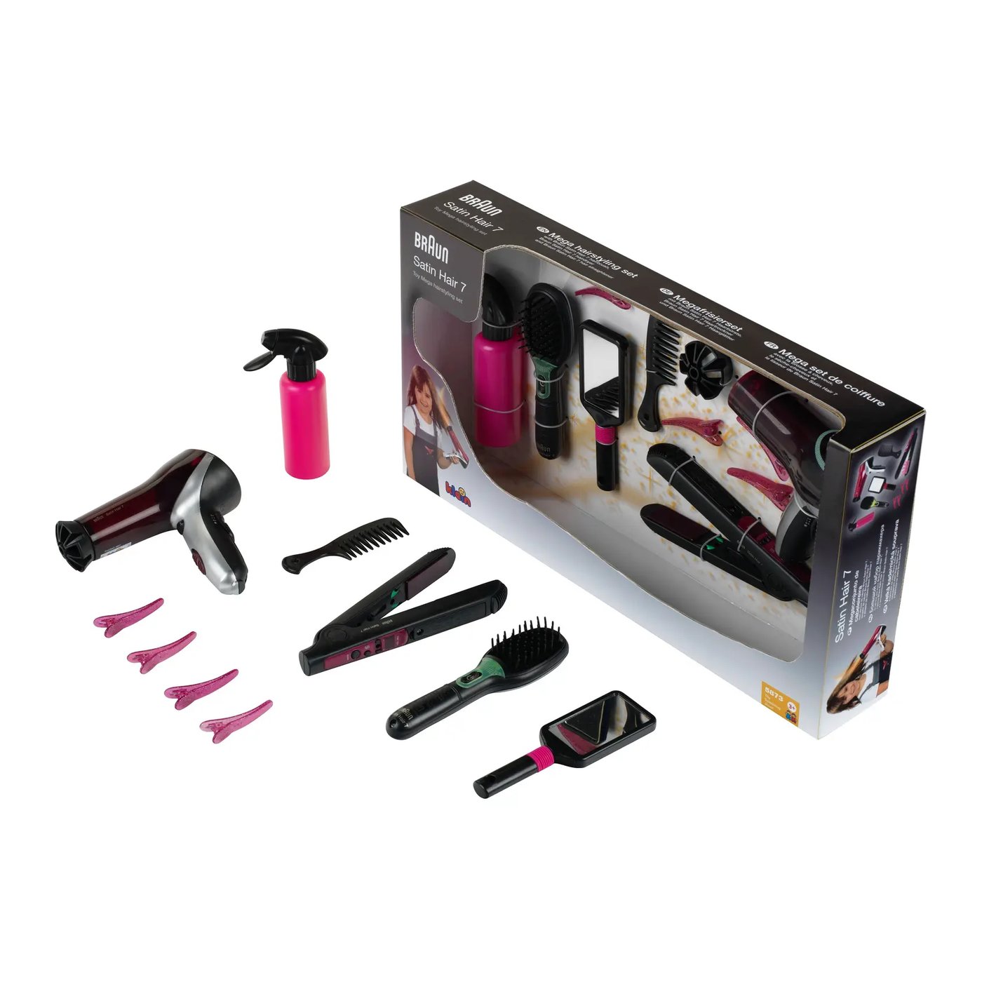 Vaši mališani će biti očarani svakodnevnim avanturama u vlastitom kućnom salonu s Braun Satin Megasetom za kosu 5873. Ova pažljivo dizajnirana igračka set čini ih pravim frizerima, razvijajući njihovu maštu i fine motoričke vještine. Zamislite radost na licima vaše djece dok stvaraju nove frizure, inspirirane najnovijim trendovima, u elegantnom salonu koji su sami stvorili.