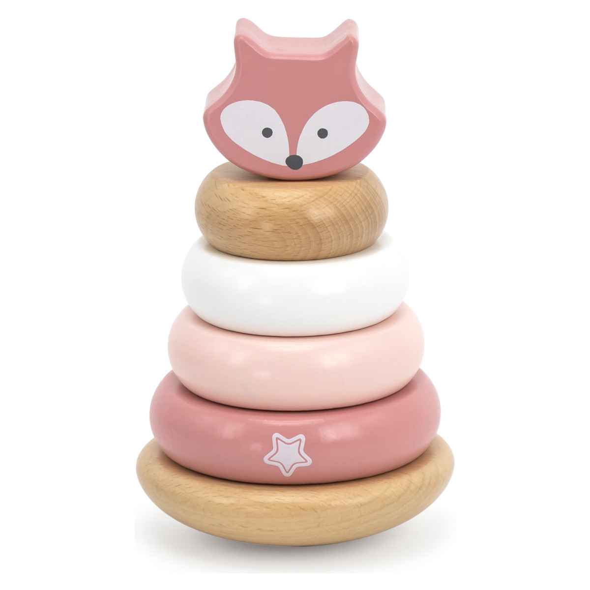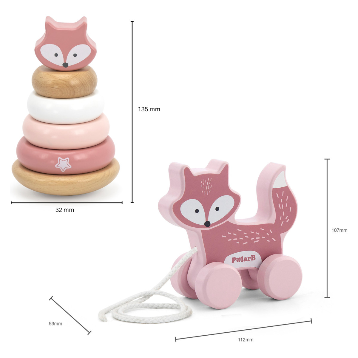 Zahvaljujući pažljivo osmišljenim detaljima, ova igračka potiče samostalnost i motorički razvoj od najranije dobi (već od 18 mjeseci). Mali istraživači mogu povlačiti lisku po stanu, što ih motivira na kretanje i prva mala istraživanja prostora, ili veselo kombinirati šarene kocke na stabilnoj piramidi, učeći pritom boje i logičko razmišljanje. Sve to uz sigurnost i toplinu prirodnog drva!