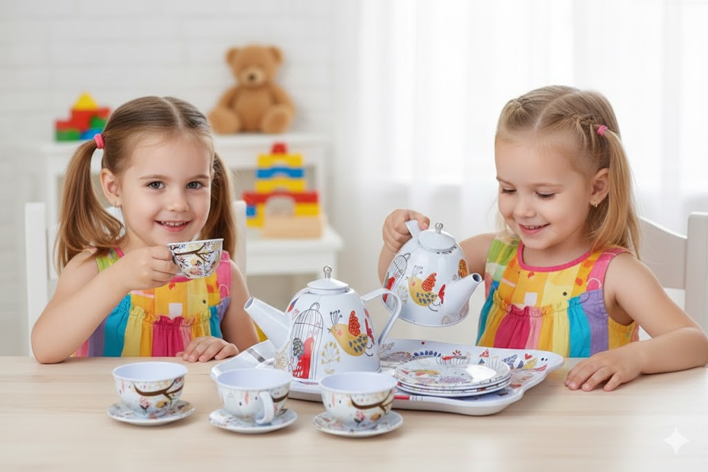 Razvoj vještina: Igra uloga pomaže djeci u vježbanju bontonu, dijeljenju i razvijanju fine motorike prilikom “točenja” i posluživanja čaja.