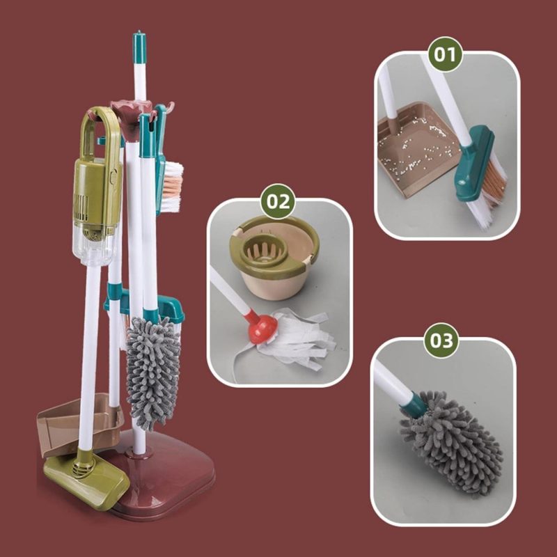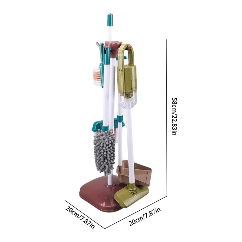 Set dolazi s podesivim visinama kako bi se prilagodio visini djeteta. Ovaj set za djecu potiče dječju imitaciju i interes za čišćenje sobe. Dijete će biti oduševljeno što može čistiti poput odraslih.
