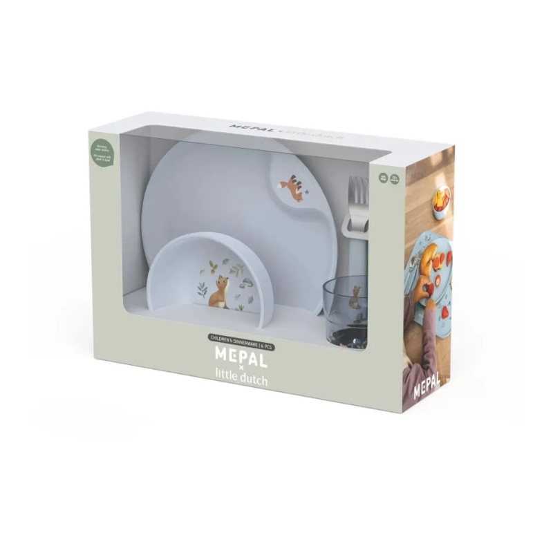 Dizajniran s posebnom pažnjom prema detaljima, Forest Friends set nudi sve što je potrebno za ugodan i siguran obrok. Uz tanjur, zdjelicu, 3-dijelni pribor i čašu, ovaj set je idealan za djecu stariju od 12 mjeseci. Izrađen od visokokvalitetnih materijala poput PBT-a, PP-a, SAN-a, RVS-a i ABS-a, osigurava dugotrajnost i otpornost na svakodnevnu upotrebu. Ono što ga čini posebnim jest njegova sposobnost da unese dozu magije i zabave u svakodnevne obroke kroz predivne ilustracije šumskih prijatelja.