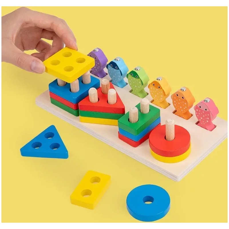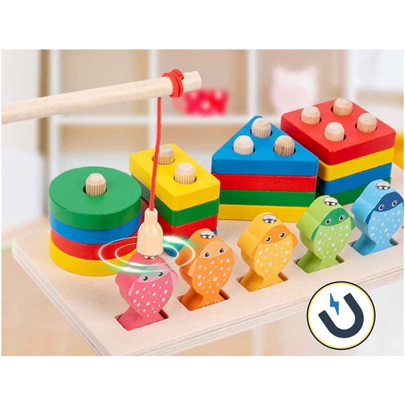 Ovaj 2-u-1 set omogućuje djetetu da se zabavi s sortiranjem oblika ili ribolovom. Ova igra je posebno dobra za interakciju između roditelja i djece te pomaže u razvoju motoričkih vještina djeteta.