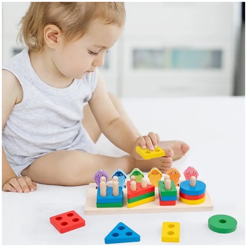 Ovaj set također ima montessori edukativni pristup. Sadrži 4 različita geometrijska oblika i 4 različite boje, privlačeći pažnju djeteta i omogućujući mu da se zabavi i uči istovremeno. Možete ga dijeliti s obitelji ili prijateljima kako biste poboljšali slatku interakciju između roditelja i djece.