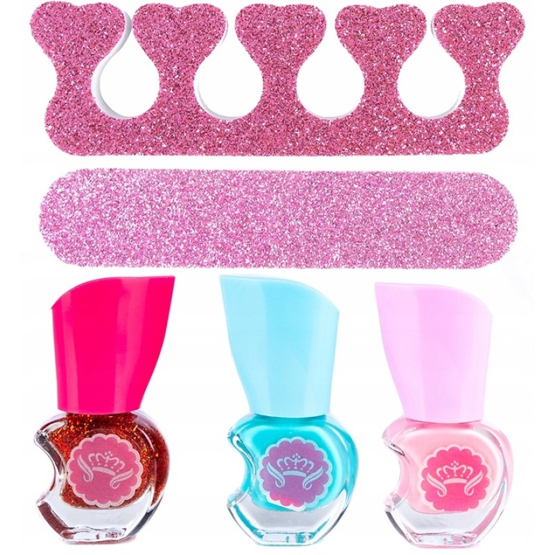 Nakon šminkanja, set uključuje i pribor za manikir, uključujući vodootporne lakove za nokte, separator i rašpice za nokte. Djeca mogu pozvati mamu, prijateljicu ili same sebi obojiti nokte te stvarati razne uzorke i motive, potičući tako svoju kreativnost i maštovitost.
