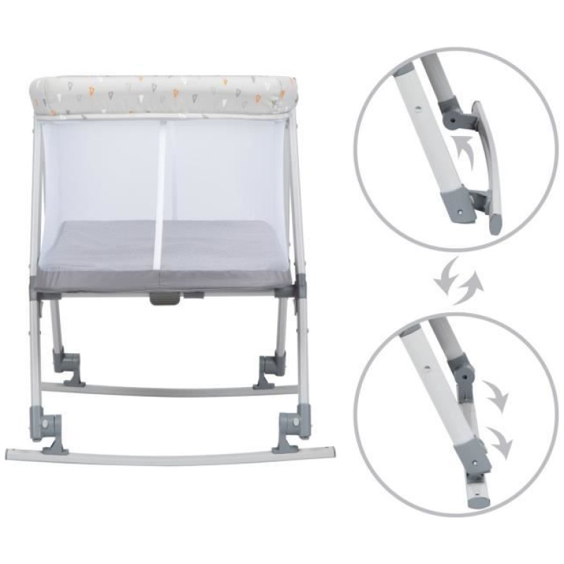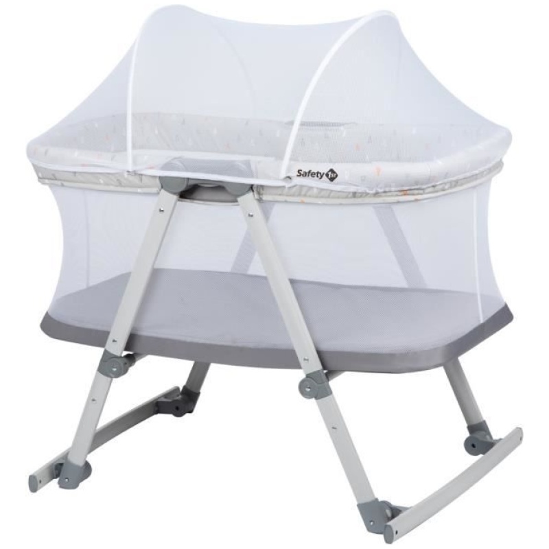Sklopivi putni krevetić za bebe. Od rođenja do 9 kg. Mala kolijevka za bebu s laganim pokretima ljuljanja. Mrežasta tkanina za pospješivanje cirkulacije zraka. Uključena mreža protiv komaraca za zaštitu bebe. Udoban madrac. Jednostavna promjena iz načina ljuljanja u fiksni način. Vodootporan štitnik za madrac koji se može prati u perilici. Lako se sklapa i rasklapa. Priložena torbica i mreža protiv komaraca.