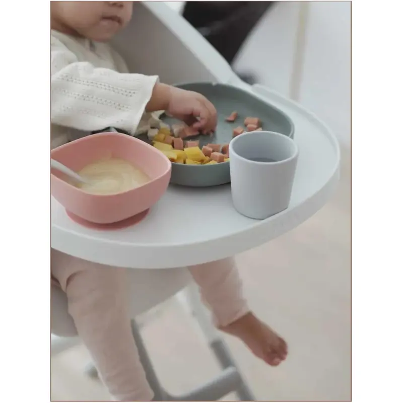 Ovaj Béaba silikonski set za jelo je savršen izbor za vašu bebu koja se upravo počinje hraniti sama. Sadrži tanjir, zdjelicu, dječju čašu i žlicu za drugu fazu hranjenja. Tanjir i zdjelica imaju vakuumsku podlogu koja ih čvrsto drži na mjestu kako bi se izbjeglo prevrtanje hrane.