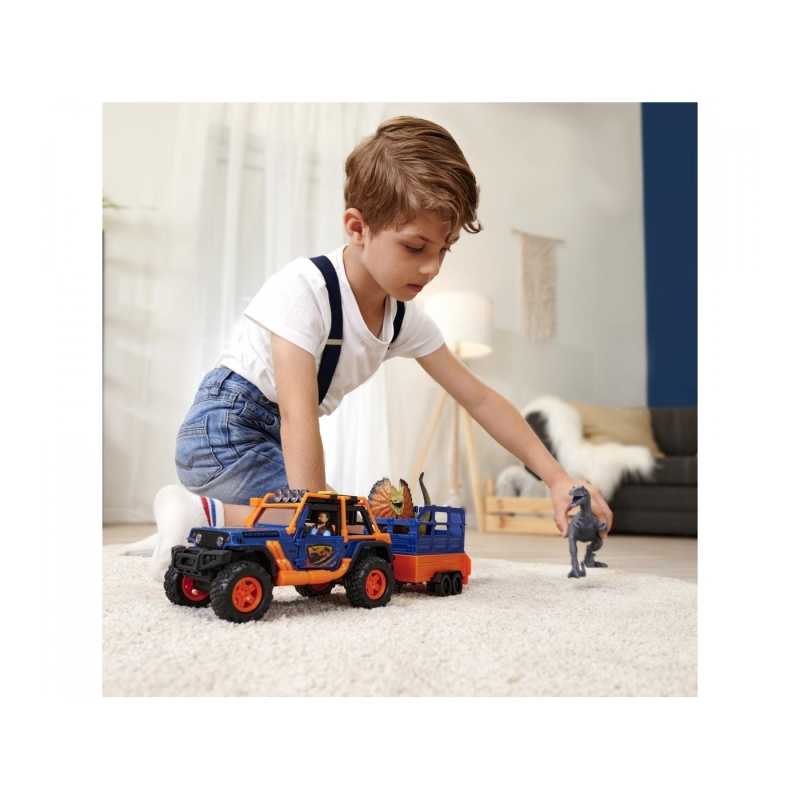 Zamislite osmijeh na licu vašeg djeteta dok otvara vrata vozila i prikolice, smješta dinosaure i kreće u neispričane pustolovine. Svojom veličinom od 40 cm i realističnim omjerom 1:24, ovaj set nudi autentičan doživljaj igre. Soft gume osiguravaju stabilnost i sigurnost igre, a fleksibilna figura dodaje dodatnu dimenziju zabave i interaktivnosti.