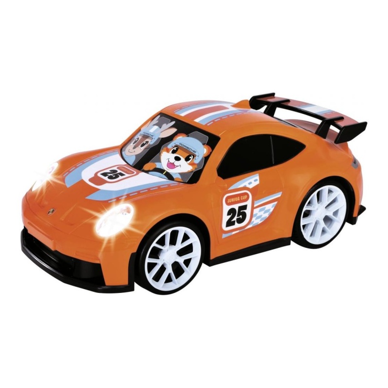 Ovaj Porsche 911 GT3 dolazi u upečatljivoj narančastoj boji s autentičnim trkaćim oznakama, uključujući startni broj 25 i šarene naljepnice lisice i jelena na vjetrobranu, što dodatno ističe njegovu privlačnost. Užitak vožnje ovim modelom nije rezerviran samo za odrasle; sada i najmlađi mogu uživati u vožnji pravog trkaćeg automobila, prilagođenog upravo njima.