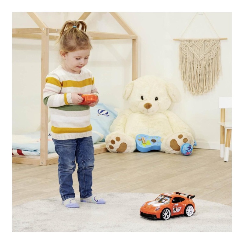 Simba Porsche 911 GT3 nije samo obična igračka, već iskustvo koje potiče dječju maštu i koordinaciju. Sa svojim glatkim, zaobljenim rubovima i velikim, jednostavnim gumbima na daljinskom upravljaču, ovaj automobil je savršen za male ruke. Svjetla automobila se automatski pale dok se kreće naprijed, dodajući dodatni sloj realnosti i uzbuđenja. Uz maksimalnu brzinu od 4 km/h, vaše dijete može sigurno istraživati svijet oko sebe, razvijajući pritom svoje motoričke vještine.