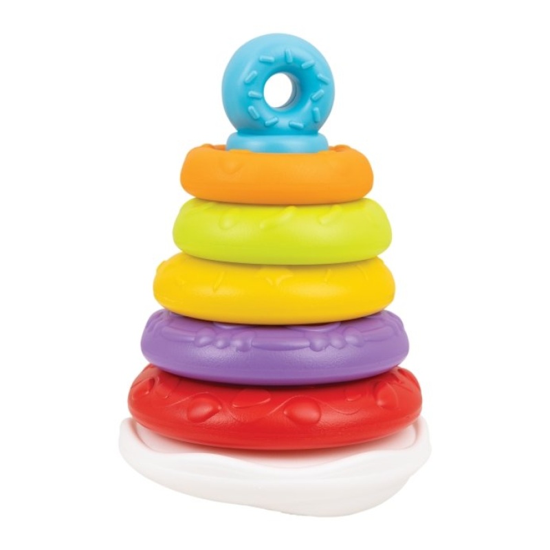 Igračka koja će odmah privući pažnju svakog djeteta i roditelja svojim živopisnim dizajnom i funkcionalnošću. Ova zabavna i edukativna igračka dolazi s pet lako drživih, šarenih prstenova koje djeca mogu slagati jedan na drugi. Svaki prsten je raznobojan, čineći proces slaganja ne samo zabavnim već i vizualno stimulirajućim. Djeca će se zabavljati dok uče o bojama, veličinama i razvijaju svoje motoričke vještine.