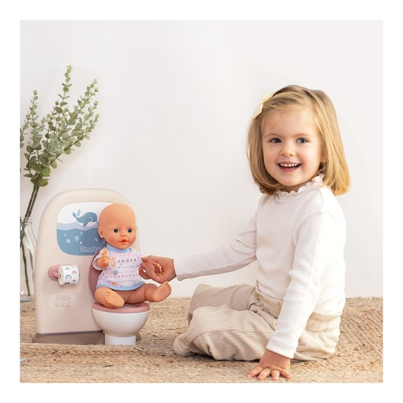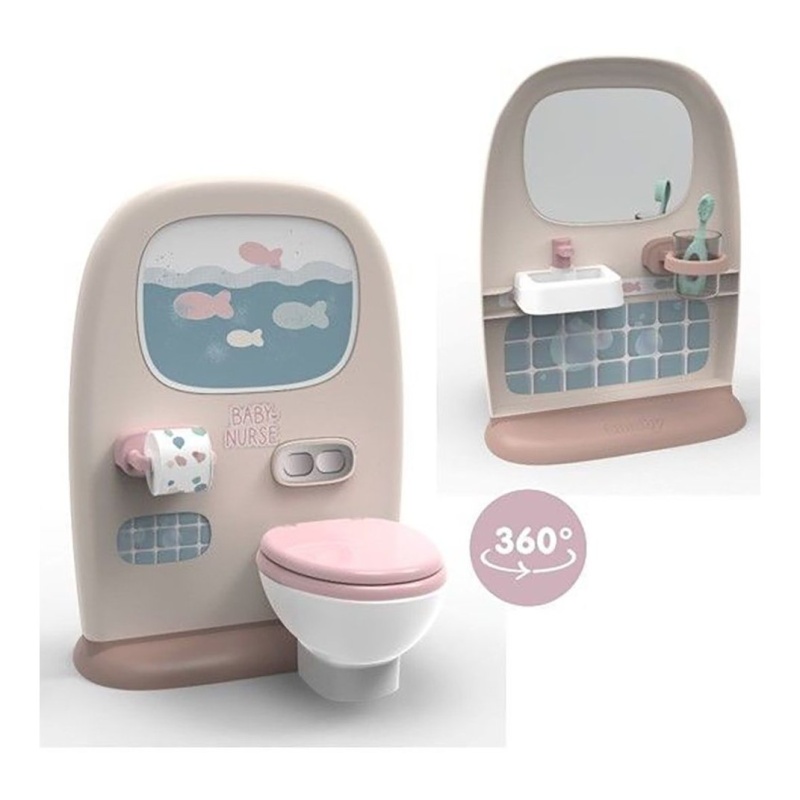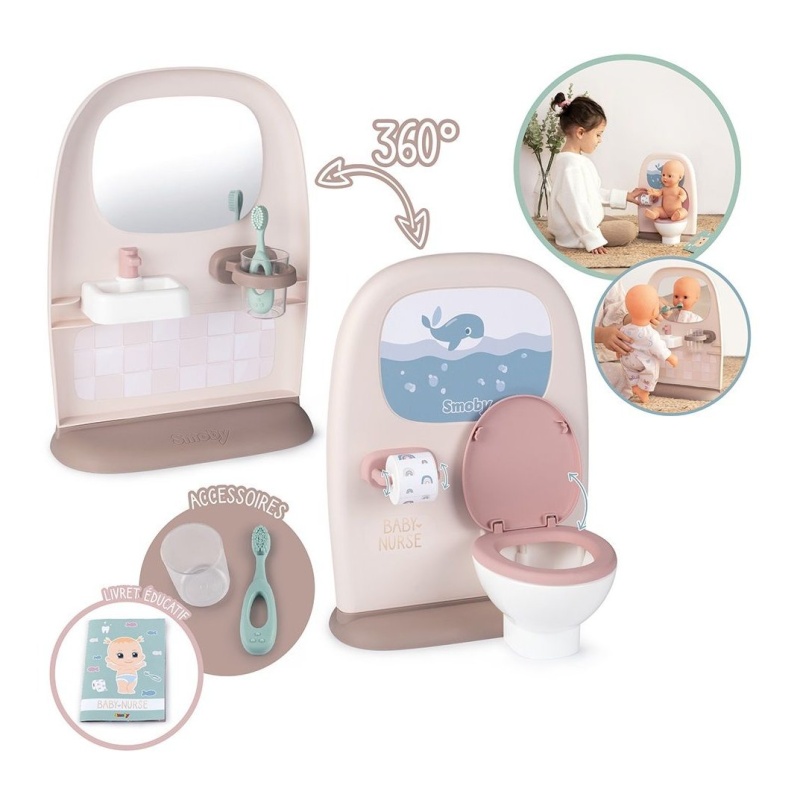 Smoby Baby Nurse Kupatilo Za Lutke nije samo igračka, već pravo malo carstvo za lutke veličine do 42 cm. Ovaj set dolazi s realistično dizajniranim toaletom koji uključuje čak i imitaciju toaletnog papira, te s umivaonikom i ogledalom. Vaše dijete će uživati u igri s detaljima kao što su gumb za ispiranje i efekti pločica. Set uključuje i čašu te četkicu za zube, potičući djecu na razvijanje zdravih navika kroz igru.