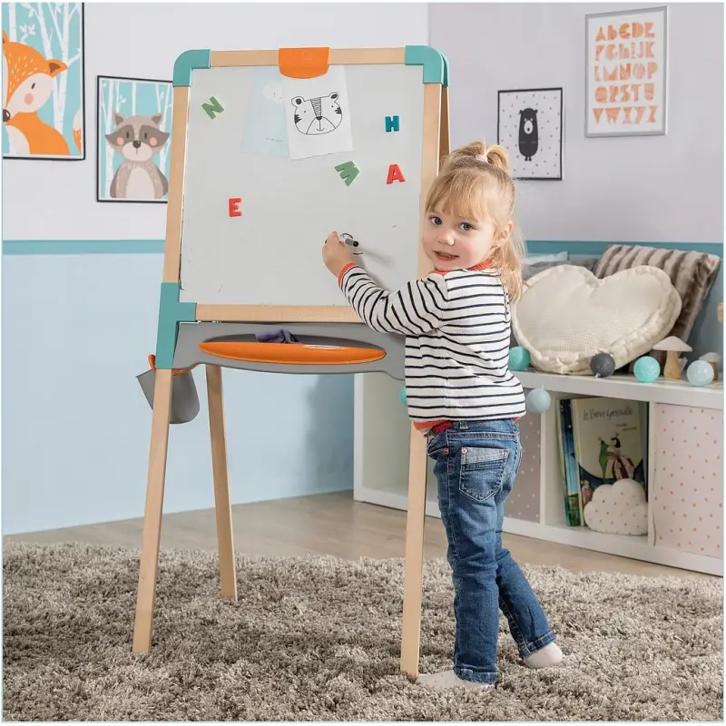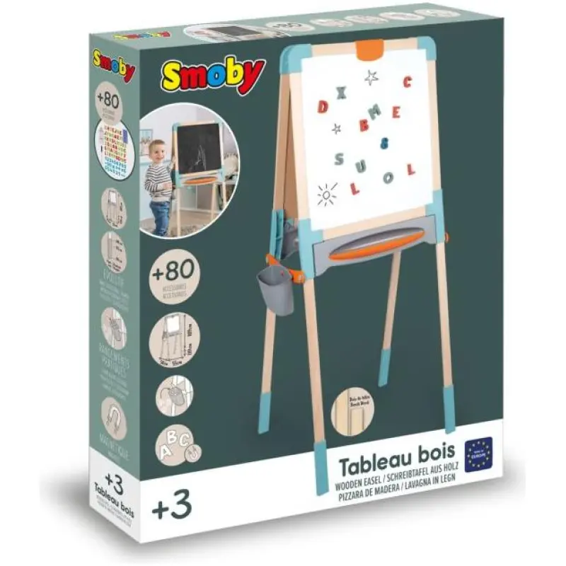 Smoby Drvena Ploča je više od igračke – to je alat koji će omogućiti vašem djetetu da uči i zabavlja se istovremeno. Ova drvena ploča je stabilna i čvrsta, a istovremeno se lako sklapa za brzo spremanje. S dodacima poput brisača flomastera, obojane krede, magnetnih slova i brojeva te spužve za brisanje, vaše dijete će biti potpuno opremljeno za uspješno učenje. Također, ploča ima i držač za papir, koji će vašem djetetu omogućiti da objesi svoje crteže i stvaranje.