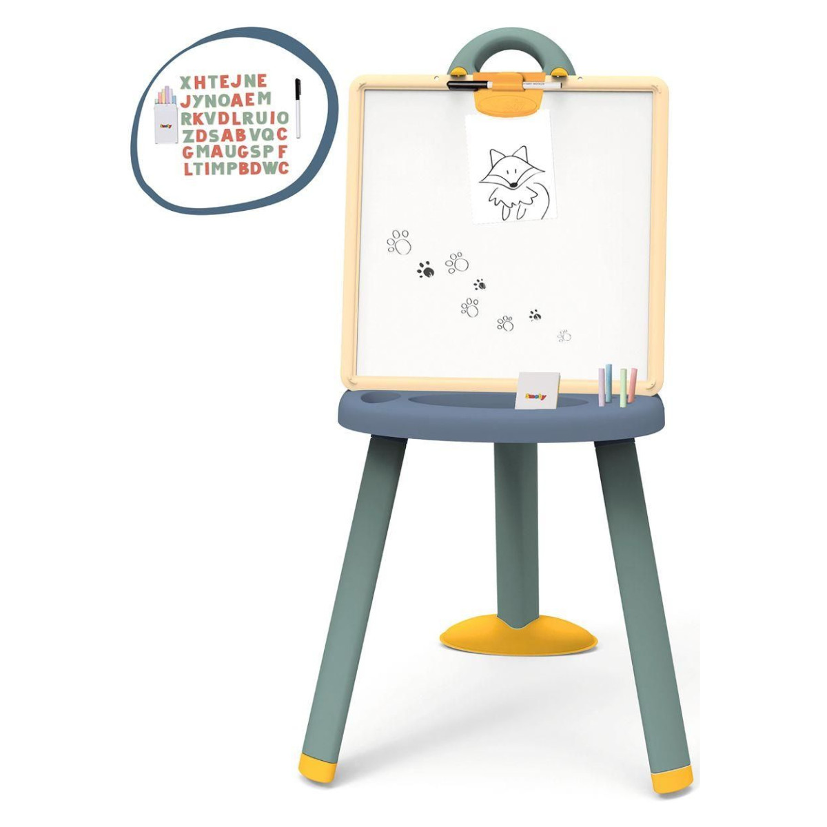 Smoby drvena ploča s dodacima osmišljena je za djecu koja vole crtati, pisati i učiti kroz igru. Dvostrani format omogućuje korištenje crne strane za kredu i magnetske strane za flomastere i magnetske znakove, pa je proizvod praktičan za više različitih aktivnosti.