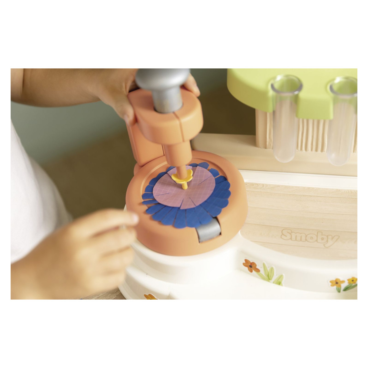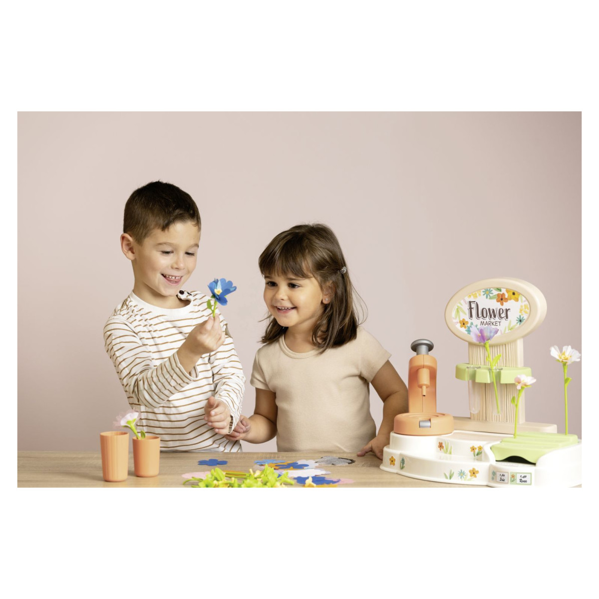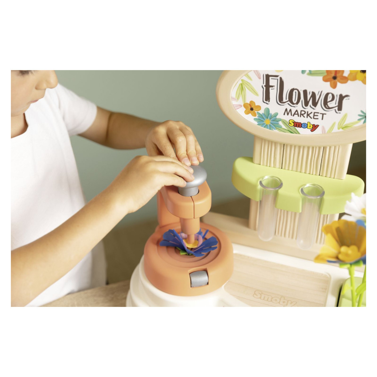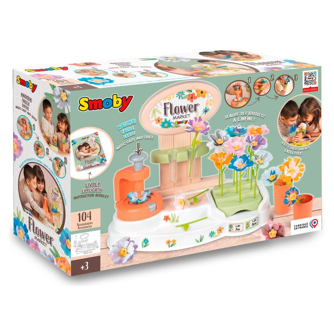 Smoby Flower Market kreativni je set za djecu koja vole izradu cvijeća, slaganje buketa i maštovitu igru. Središnji dio seta je mehanička preša pomoću koje djeca mogu sastavljati latice, stabljike i cvjetna središta te stvarati vlastite cvjetne kombinacije.