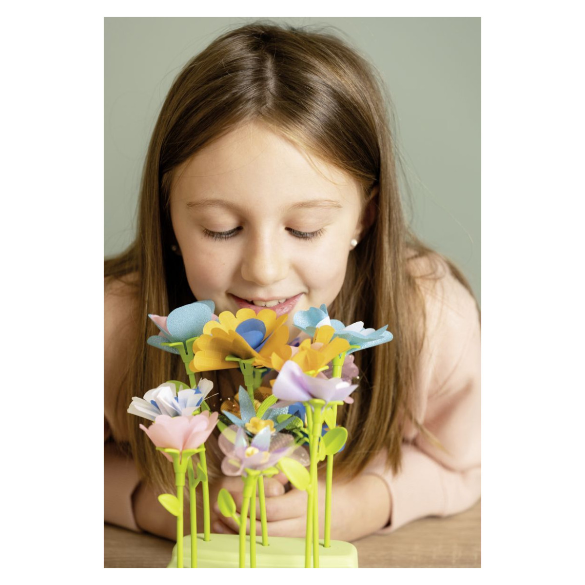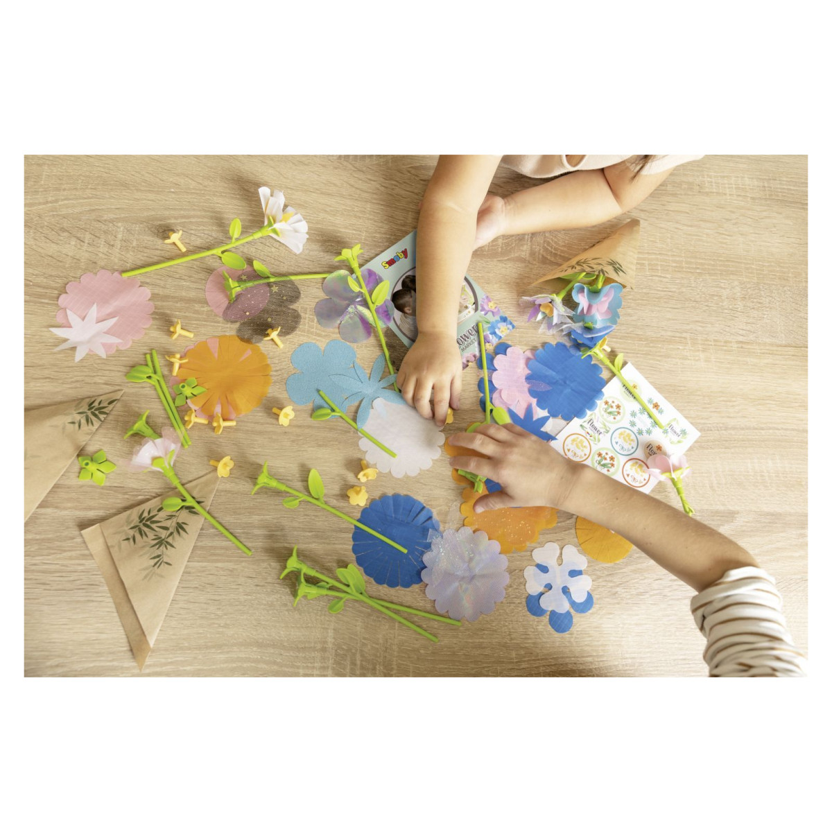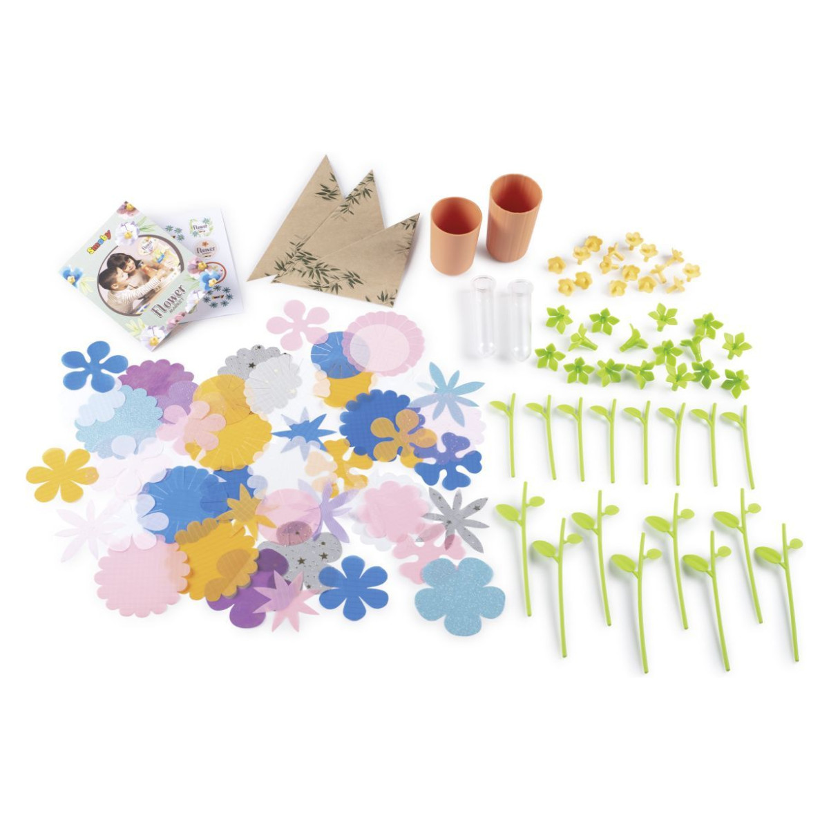 set je prikladan za djecu od 3 do 6 godina. U pakiranju se nalazi više od 100 dodataka, uključujući prešu za cvijeće, latice, stabljike, vaze, epruvete, papirnate vrećice i naljepnice, pa je riječ o sadržajno bogatom setu za dulju kreativnu igru.