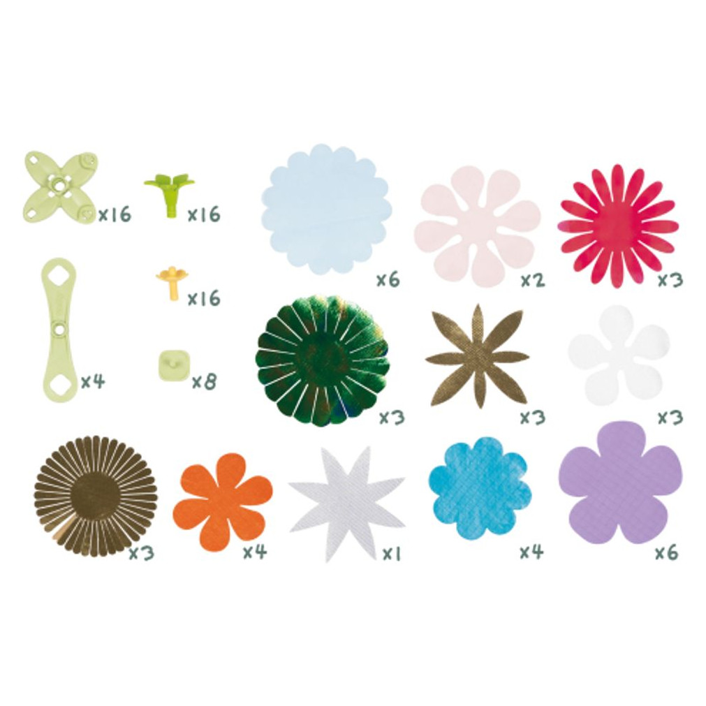set je prikladan za dob od 5 godina naviše. U pakiranju se nalazi 200 dodataka, uključujući latice, cvjetna središta, stabljike i elemente za slaganje, pa set nudi više mogućnosti od klasične jednokratne kreativne aktivnosti.